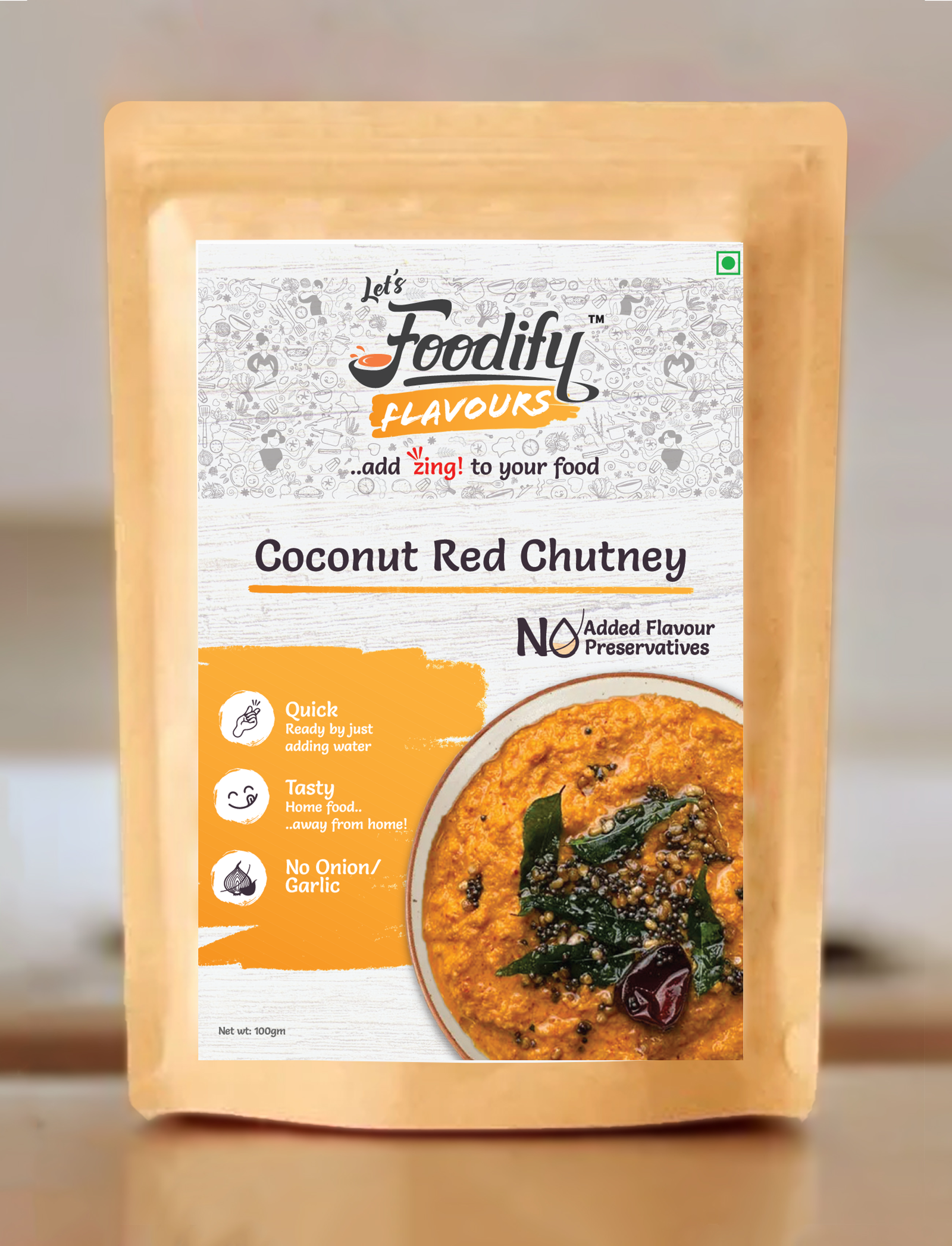 Coconut Red Chutney blends coconut, red chilli, and spices for a bold, spicy, and tangy South Indian flavor. Simply add normal water, mix well, and enjoy a smooth chutney ready in minutes.