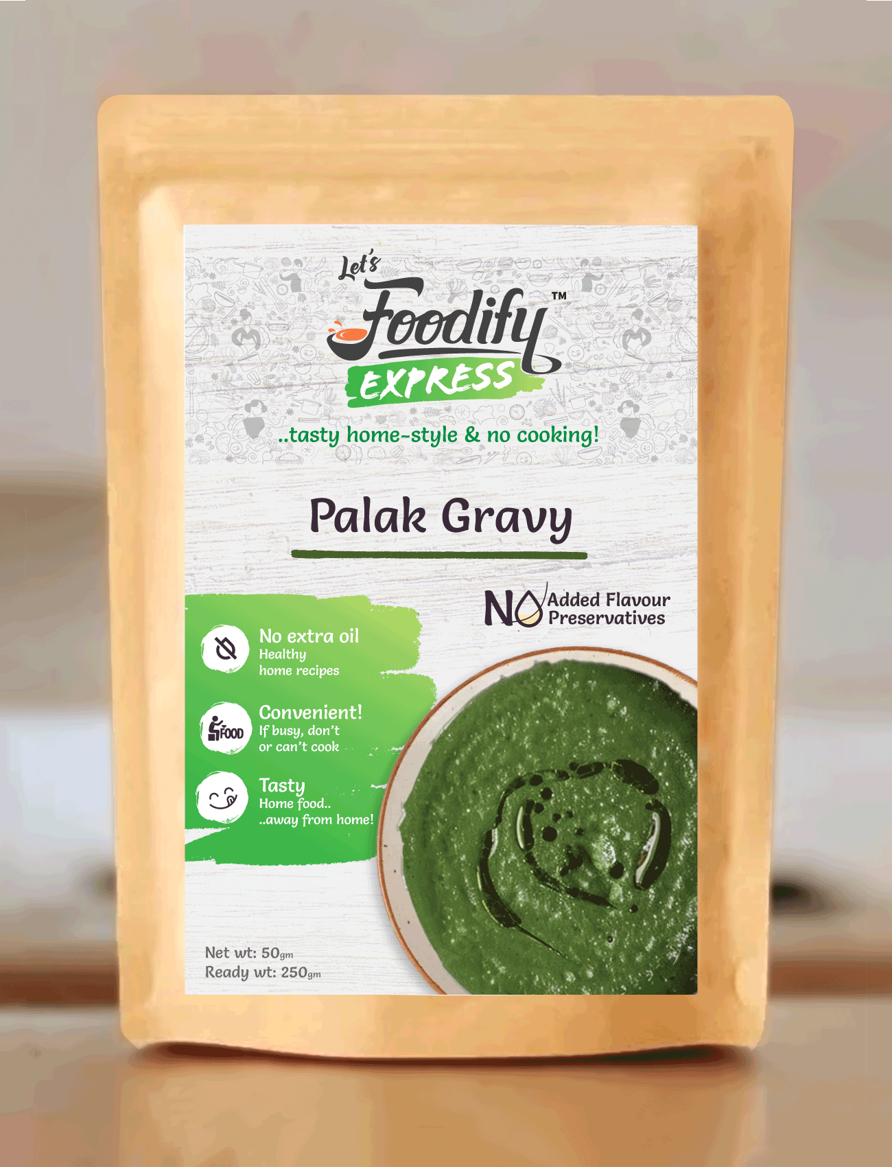 Palak Gravy is a smooth spinach-based preparation cooked with aromatic spices for a rich, comforting taste. Simply add hot water and enjoy a wholesome, flavorful gravy ready in 6 minutes.