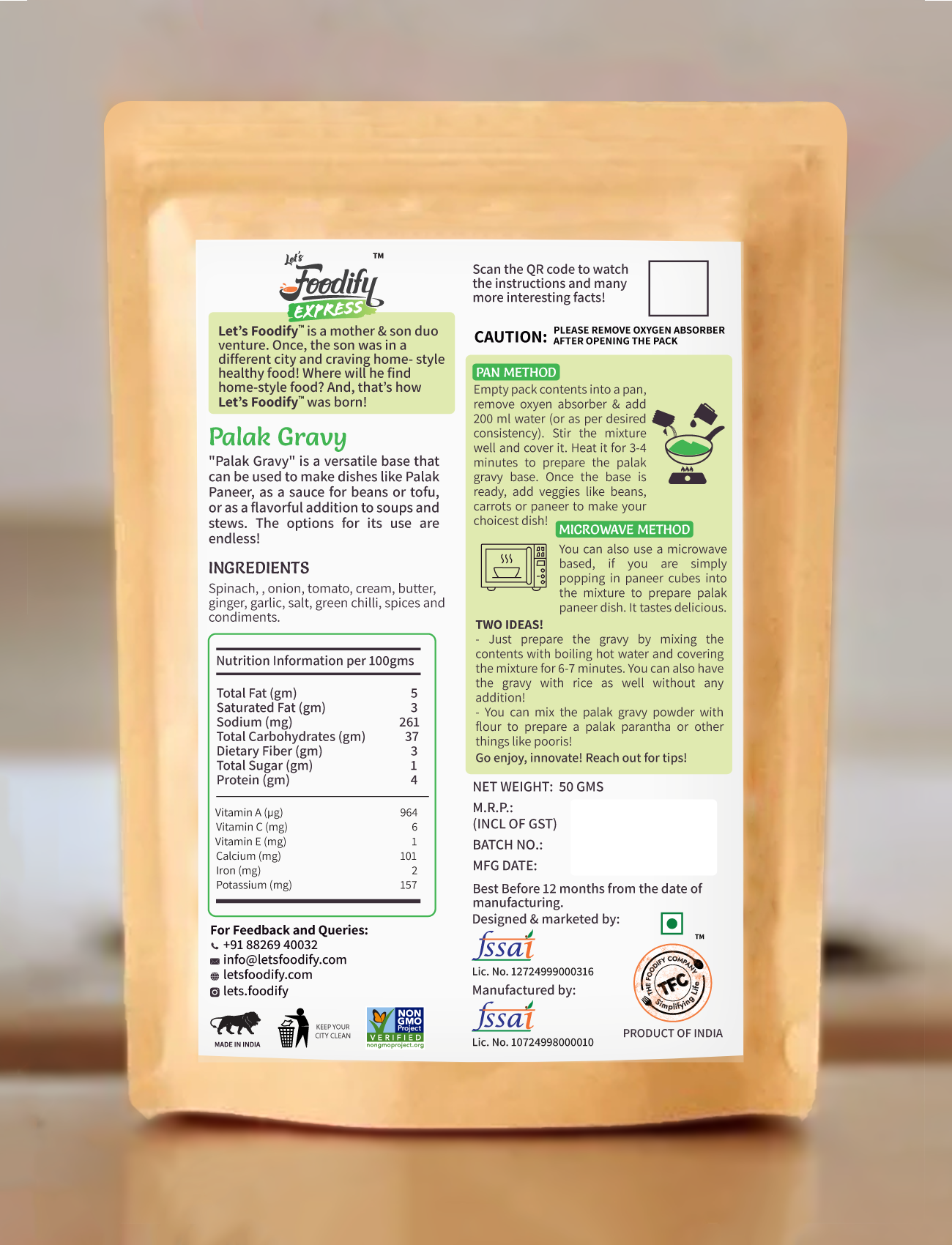 Net Wt: 50g | Ready Wt: 250g | Shelf Life: 12 months